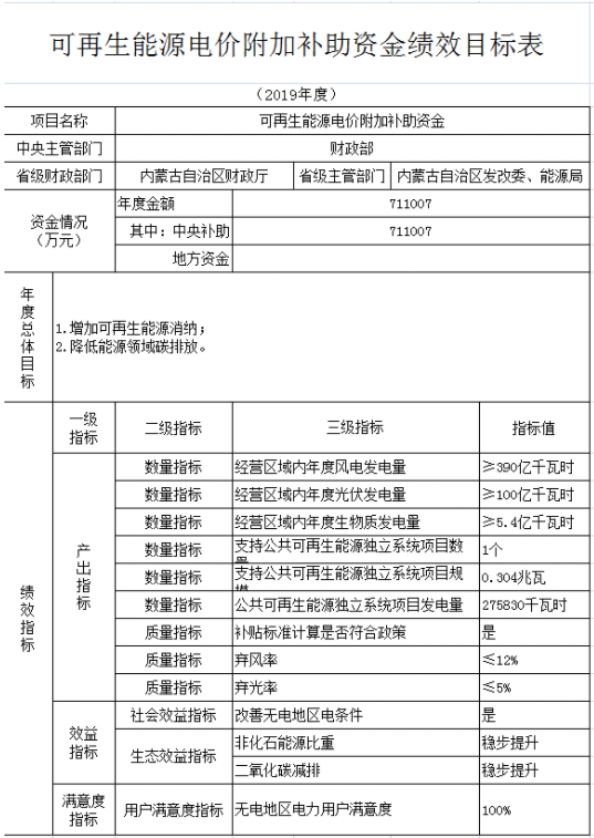 附件:財(cái)政部可再生能源電價附加補(bǔ)助資金績效目標(biāo)表