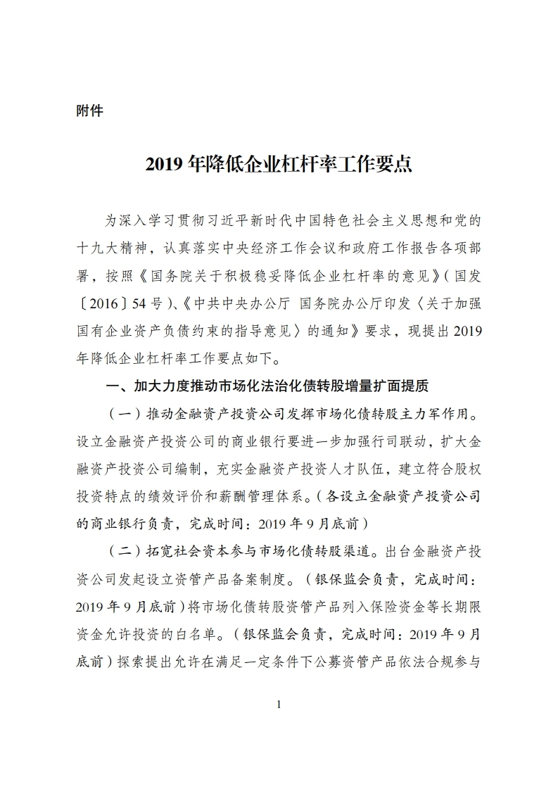 關(guān)于印發(fā)《2019年降低企業(yè)杠桿率工作要點》的通知